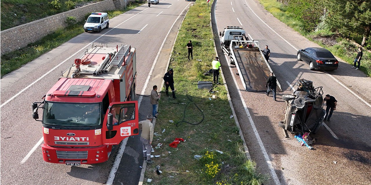 Kaza, Kırıkkale'nin Bahşılı ilçesinde meydana geldi. Edinilen bilgiye göre, Duygu B. idaresindeki 71 ADE 195 plakalı Fiat-Tofaş marka otomobil, sürücüsünün direksiyon hakimiyetini kaybetmesi sonucu kontrolden çıkarak takla attı. Meydana gelen trafik kazasında otomobil hurdaya dönerken, sürücü ile kocası Ü.P. (30) ve 4 yaşındaki kızı E.N.A. ağır yaralandı.
