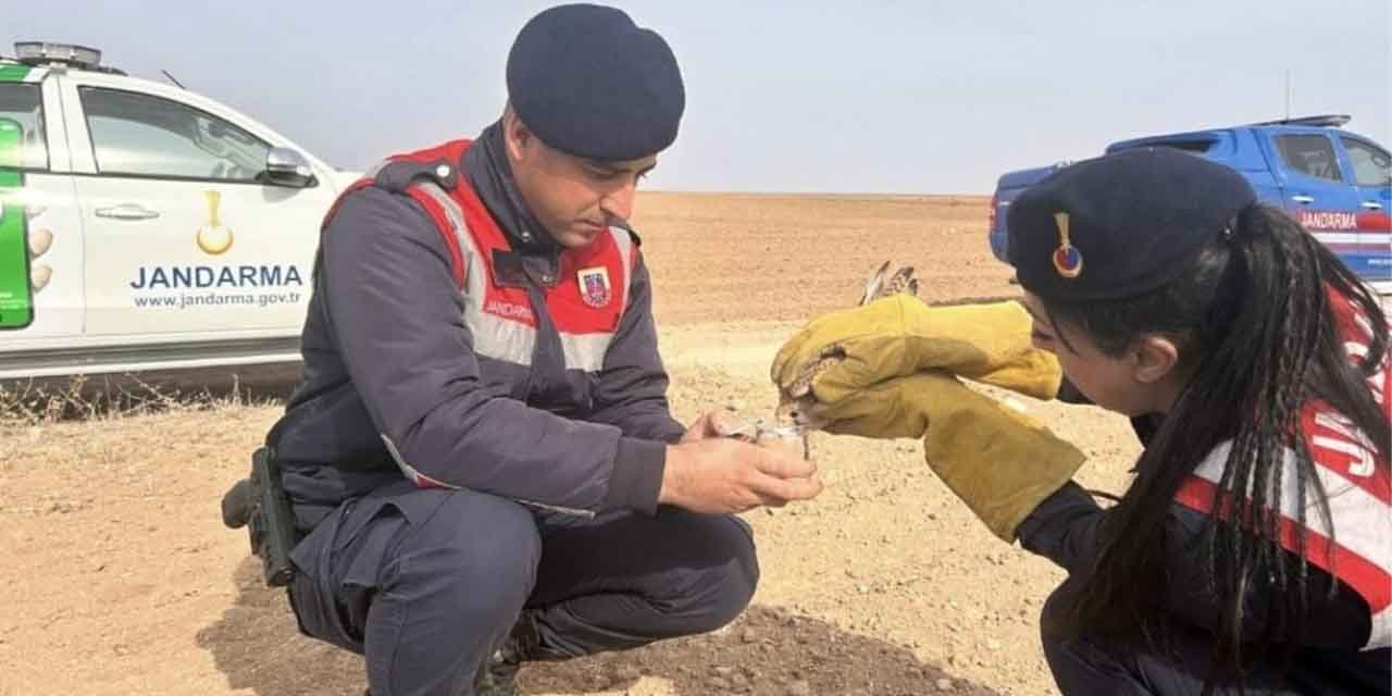 Bitkin düşen şahinin yardımına jandarma koştu