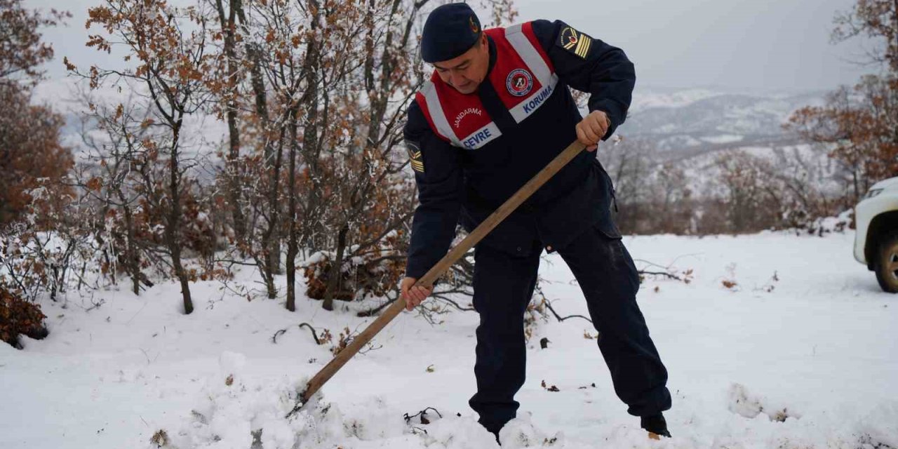Jandarmadan yaban hayvanlarına şefkat eli