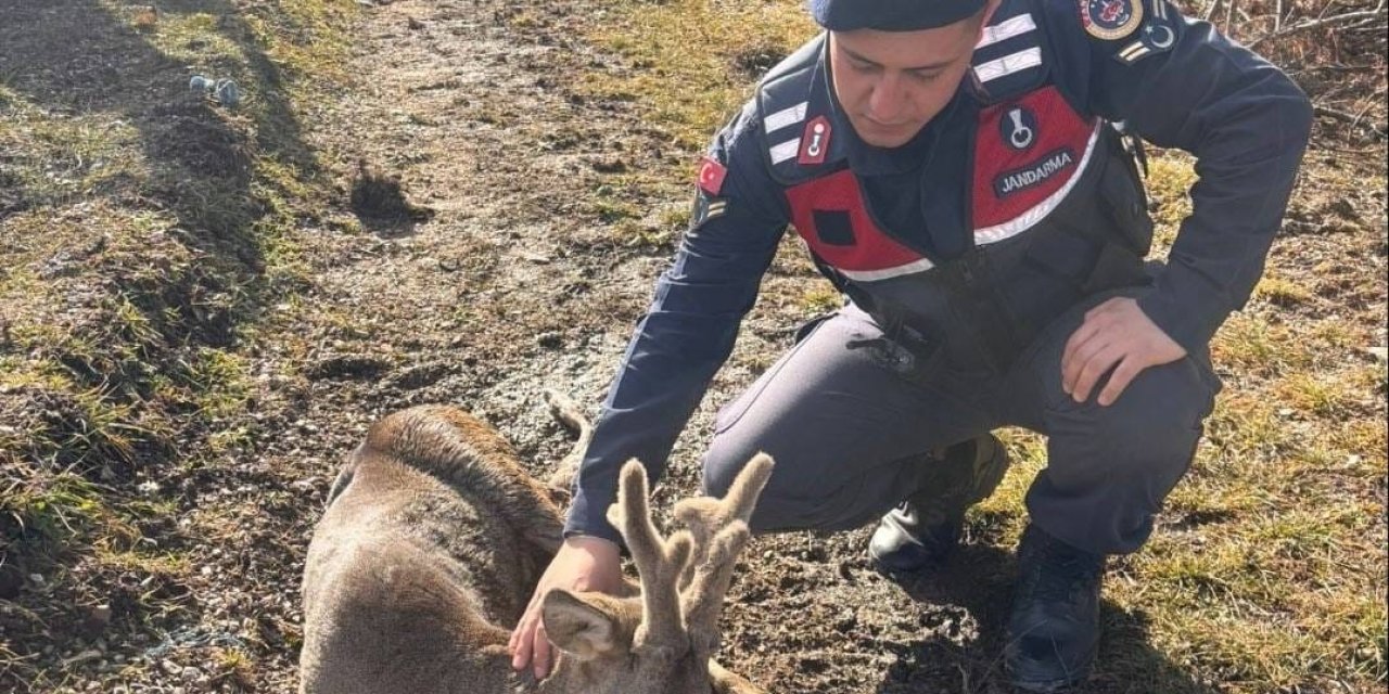 Jandarma ekiplerinin bulduğu yaralı karaca tedavi altına alındı