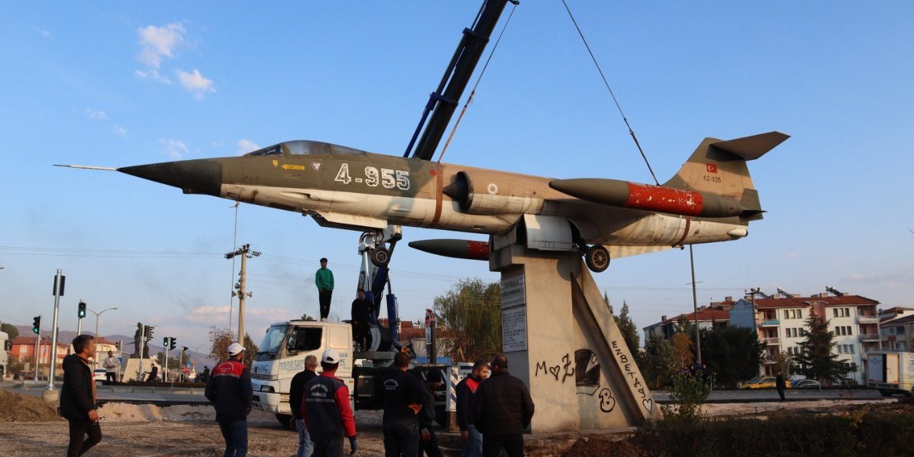 İlçenin simgesi haline gelen savaş uçağı yeni yerine taşındı