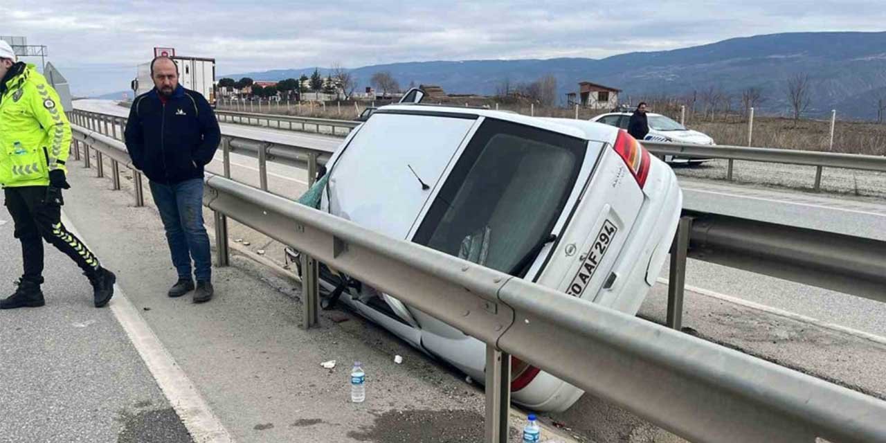 D100 karayolunda araç bariyerlere asılı kaldı: 2 yaralı