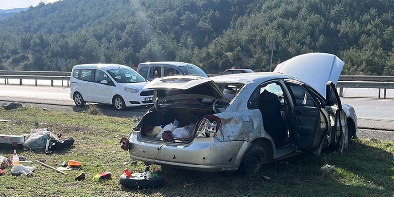 D100’de otomobil yan yattı: 1’i çocuk 3 yaralı