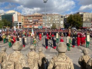 Kırıkkale Valiliği, Kırıkkale Belediyesi ve İl Jandarma Komutanlığının ortak organizesinde Jandarma Genel Komutanlığına bağlı Türkiye'nin ilk ve tek helikopter akrobasi filosu Jandarma Çelik Kanatlar, mehteran takımı ve atlı birlikler Cumhuriyetin 100. Yılı etkinlikleri kapsamında Kırıkkale’ye geldi. Kırıkkale Belediyesi önünden yürüyüşle başlayan kutlama etkinlikleri Cumhuriyet ve Demokrasi Meydanındaki mehteran takımı konseri ile devam etti. Yapılan yürüyüşe Kırıkkale Valisi Mehmet Makas, Kırıkkale Milletvekilleri Mustafa Kaplan, Halil Öztürk, Kırıkkale Belediye Başkanı Mehmet Saygılı, bürokrasinin üst düzey temsilcileri, öğrenciler ve vatandaşlar katıldı. Cumhuriyet Meydanında tamamlanan yürüyüşün ardından Jandarma Mehteran takımı katılımcılara konser verdi. Meydanı dolduran Kırıkkaleliler ellerinde Türk Bayrakları ile gösterileri ilgiyle takip etti. Konserin tamamlanmasının ardından sahneyi Türkiye'nin ilk ve tek helikopter akrobasi filosu Jandarma Çelik Kanatlar aldı. Çelik kanatların Kırıkkale semalarındaki akrobasi gösterisi büyük beğeni topladı. Düzenlenen program sonrası değerlendirmelerde bulunan Kırıkkale Valisi Mehmet Makas “Kırıkkale'mizde bir gurur günü yaşıyoruz. Malumlarınız 100. yıl kutlama sadece 29 Ekim akşamıyla bitmedi. Çünkü Türk'ün çağı Türkiye yüz yılı böyle kısa kutlamalarla girilecek bir dönem değil. Çünkü hepimizin beklediği özlediği bir yüzyıl. Bundan dolayı biz bütün kurumlarımıza farklı görevler vermiştik. Tüm kurumlarımız kendi sahasıyla ilgili halkımızı onurlandıracak, gururlandıracak, Türkiye yüzyılına da heyecanla sokacak, kutlu yürüyüşümüze devam edebileceğimiz güzel gösteriler hazırlamasını istemiştik. İl jandarma komutanlığımız ve Belediye Başkanlığımız,İçişleri Bakanlığımız ve Jandarma Genel Komutanlığımızla iş birliği içerisinde vekilimizin de desteğiyle bize bu üzüm salkımı artı çelik kanatların farklı gösterileriyle bir gurur günü yaşattılar. Jandarma Mehteran Takımımızla beraber de bu gururu hep beraber yaşadık. Devletimiz ilelebet payidar kalacaktır. Bundan kimsenin şüphesi olmasın ve dünyaya ecdadımızın, dedemizin yaptığı üzere adaleti, hoşgörüyü, eşit dağılımı da getirecek olan yine bizim yüce milletimizdir” diye konuştu.