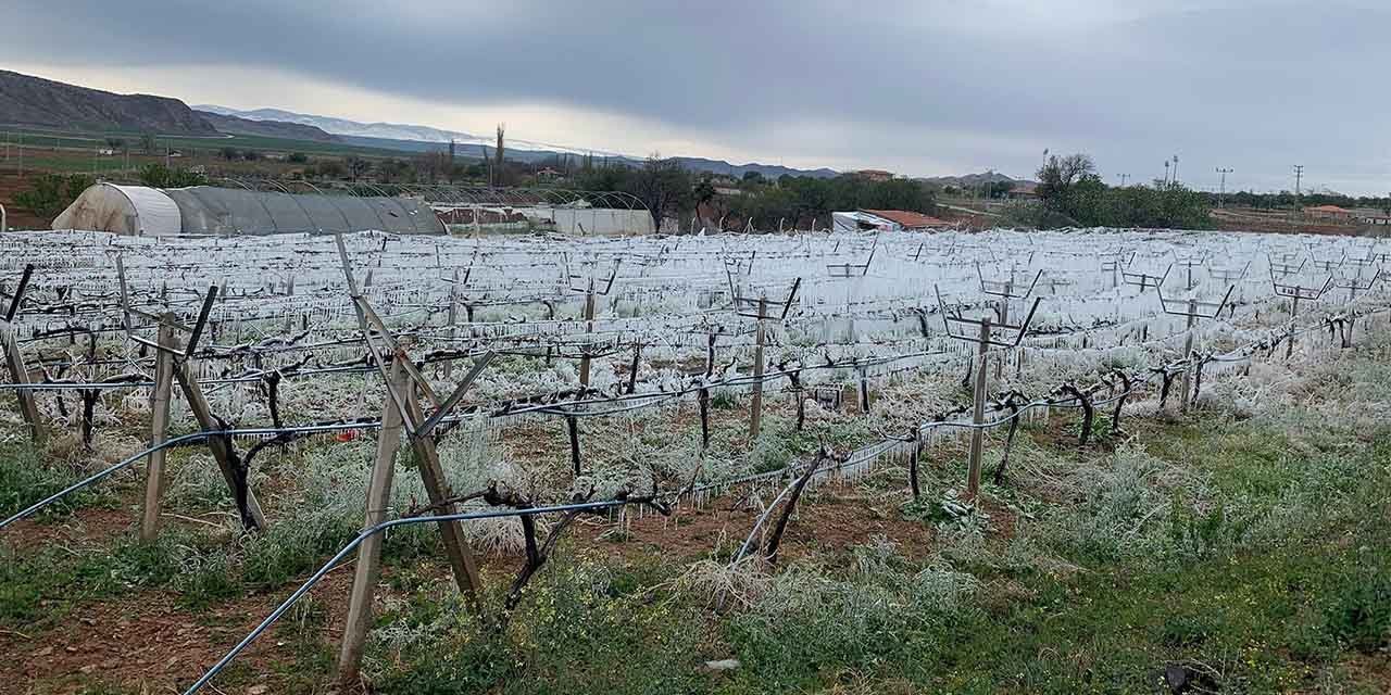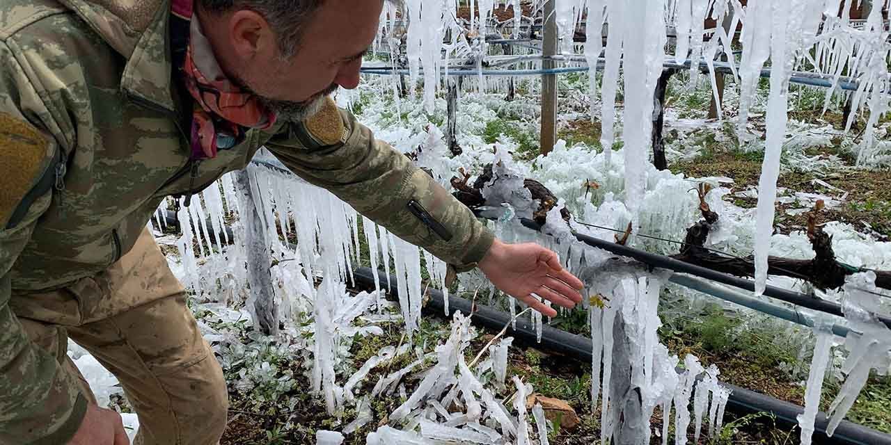 Erdem, "Dereceler -8’i gördü. Yağmurlama yaparak bağları buz haline getirip soğuktan kurtarmaya çalıştık. İnşallah yaptığımız teknik işe yarar, bağlarımız zarar görmeden bu süreci atlatırız" dedi.