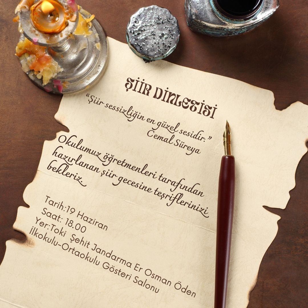 Okul öğretmenlerinin hazırlayıp sahneleyeceği özel bir şiir gecesi etkinliği, 19 Haziran Çarşamba günü saat 18.00’de gerçekleştirilecek. Etkinlikte, öğretmenler birbirinden anlamlı şiirleri seslendirerek sanatseverlere duygu dolu anlar yaşatacak. Okul yönetimi ve öğretmenler tarafından titizlikle hazırlanan geceye öğrenci velileri, eğitim camiası ve Kırıkkale halkı davet edildi.
